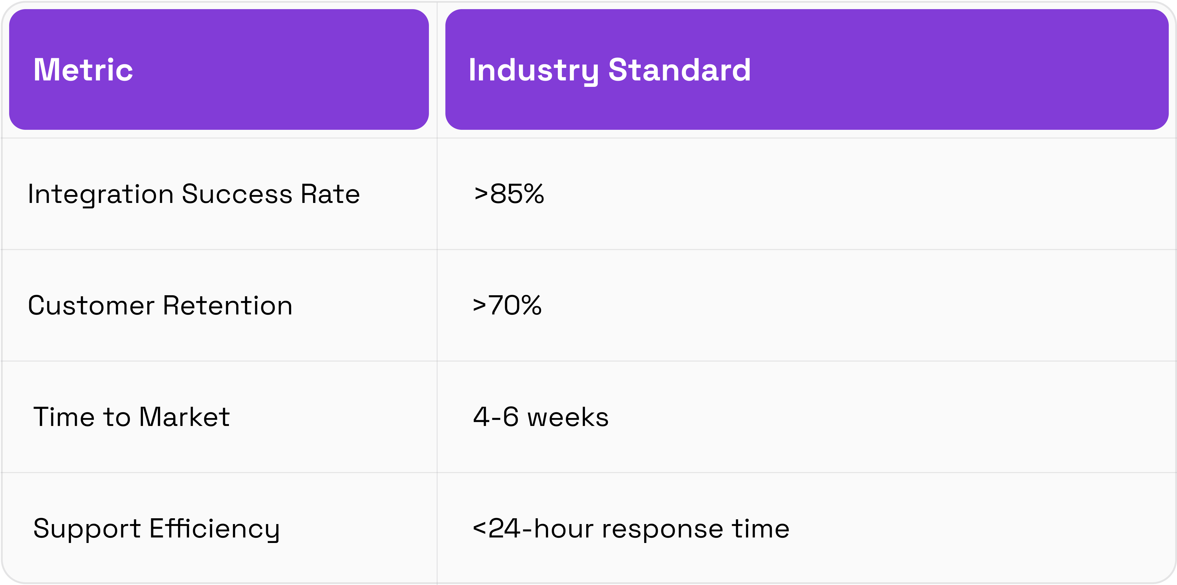 Comparing performance to industry standards ensures competitiveness and highlights areas for improvement. Common benchmarks include: